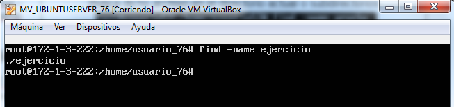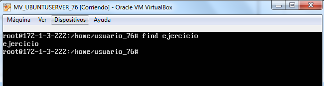 En este ejemplo vamos a ingresar el comando (find -name ejercicio) y nos mostrará el archivo con el nombre aproximado.