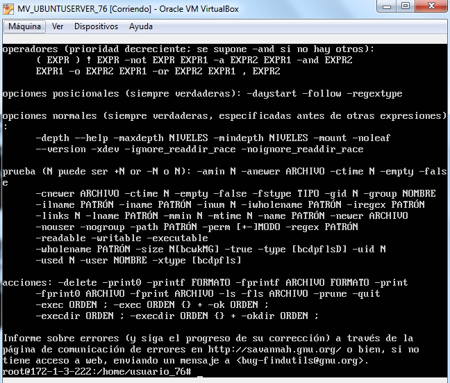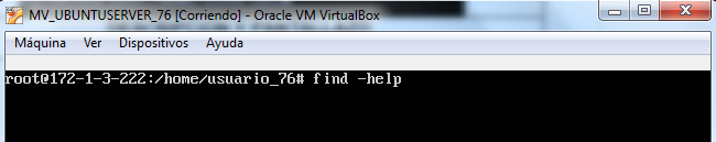 En este ejemplo vamos a ingresar el comando (find -help) y nos mostrará el archivo con el nombre aproximado.
